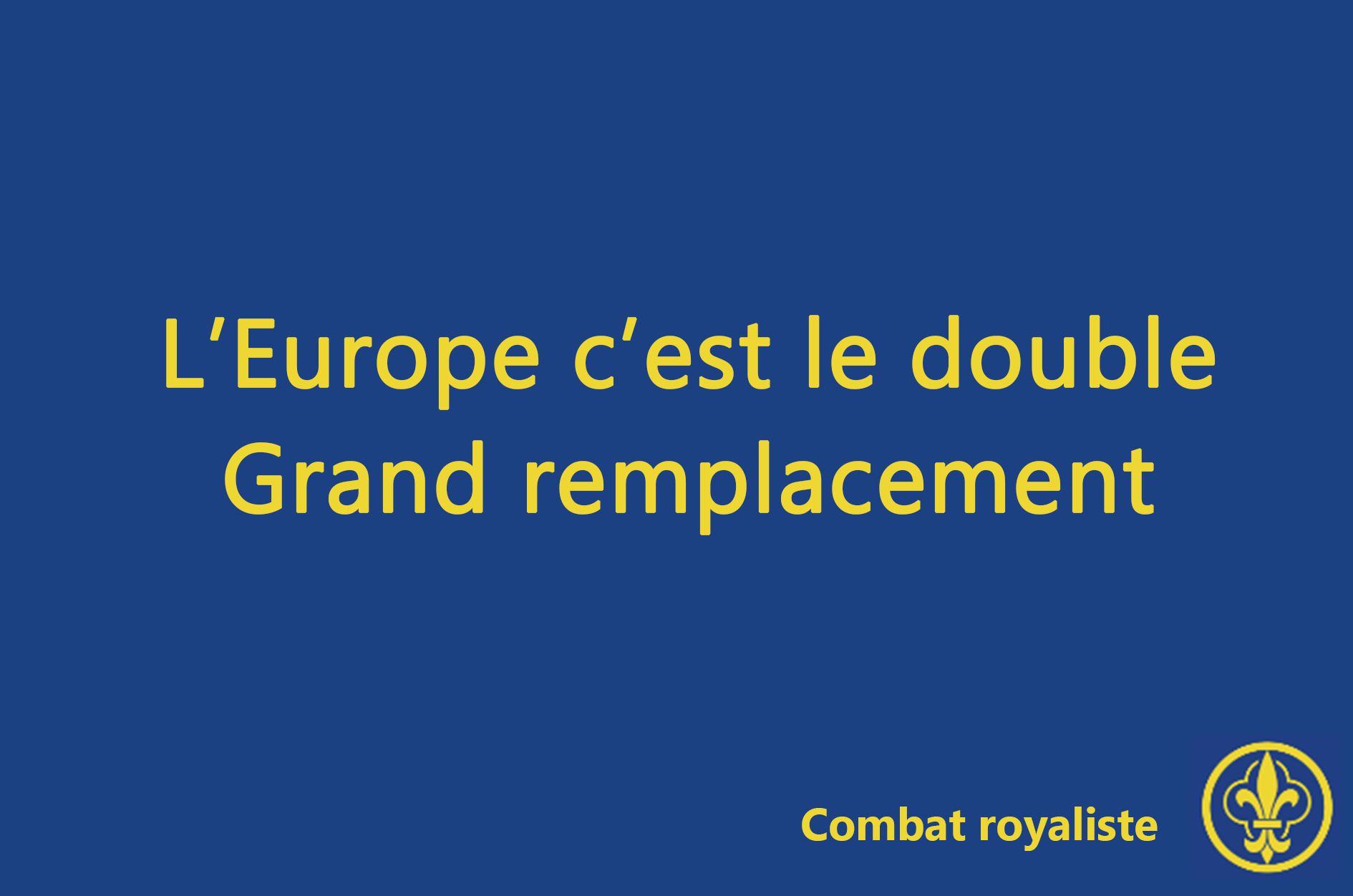 L’Europe est comme la démocratie, malgré l’échec c’est toujours mieux demain. L’Europe est un imbroglio géographique, linguistiquement une tour de Babel, racialement un leurre, historiquement un échec, diplomatiquement une soumission, démographiquement un suicide, économiquement une régression. De plus, l’Europe est immigrationniste et la pourvoyeuse acharnée du Grand remplacement, dont l’histoire démontre par les ethnocides amérindien du XVIIe siècle et aborigène du XIXe qu’il ne relève pas du complotisme.