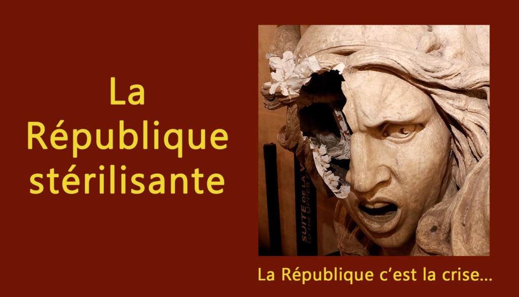 À l’origine de cette faillite, le blocage présidentiel. L’actuel président ne voulant pas démissionner, la France est privée de sa capacité à conduire son destin et à vivre en harmonie à l’intérieur et à l’extérieur, juste au moment où les circonstances exigent qu’elle soit forte et unie. Il resterait à Emmanuel Macron à s’arroger les pleins pouvoirs sous prétexte d’urgence, et à mettre en jeu l’article 16. Il resterait aussi à un gouvernement de gauche de faire passer par ordonnances des mesures qui lui procureraient un avantage électoral ou juridique décisif… mais les moyens font défaut.