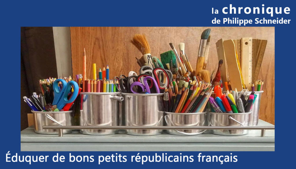 Mais doit-on en conclure que cela ne se passe que dans les régimes où règne un parti unique, dictatorial ? Regardons notre pays, l’Instruction publique a bien été remplacée par l’Éducation nationale ! Et c’est une volonté de notre République – et ceci depuis le début – de façonner les petits Français, de les endoctriner pour qu’ils soient de « bons républicains ». Et c’est difficile de l’être si on leur apprend à aimer la France, son histoire, sa culture, en fait tout ce qui façonne notre pays. Tout est fait pour rendre les petits Français incultes, ignorants, plus faciles ainsi à être manipulés par les politiciens, les groupes économiques et financiers. Au début, ce fut presque « indolore » mais, depuis 70 ans, cela s’accélère avec les réformes successives du « Mammouth » comme disait Allègre : pédagogisme, collège unique, baisse du niveau. Aujourd’hui, un petit Français sait de moins en moins lire et écrire en français, est mauvais en sciences, ne connaît pas l’histoire de France, la géographie, la culture française. Mais, en revanche, il apprend à haïr son pays, mettant en avant des « crimes » souvent inventés ou exagérés et, maintenant, une priorité semble même vouloir les ramener au rang de bêtes par la sexualité, la propagande « LGBT… » ! Jusqu’à en faire – pour quelques-uns – de véritables lâches petits barbares capables de souiller des tombes ou des monuments ! Et, bien sûr, cela est imposé aux parents, des syndicats disent même qu’il ne faut pas qu’ils sachent ce qui est dit en classe ! Heureusement, beaucoup de professeurs résistent et tentent malgré tout d’instruire les enfants. En auront-ils encore la possibilité ?