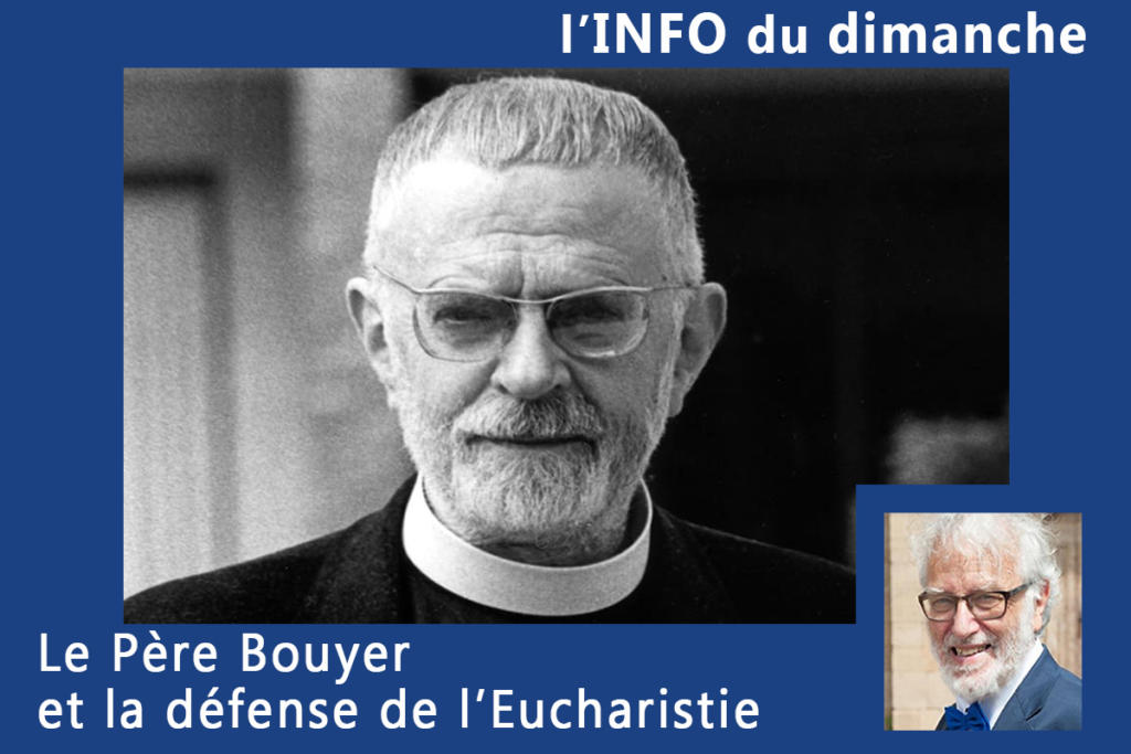 On aurait encore intérêt à suivre avec attention les conseils que nous prodiguait le Père Bouyer, tant ils consonent avec certaines querelles actuelles : « Comme l’a si fortement déclaré le concile, dans sa constitution sur la liturgie, entre les avantages de la langue vulgaire et ceux d’une langue traditionnelle, chargée de valeurs impérissables par un long usage, il n’y a pas à choisir. Les uns et les autres doivent se compléter harmonieusement dans la pratique. » Ce dont il s’agit encore aujourd’hui « c’est d’une redécouverte vivante du sens de l’Eucharistie, de ses prières constitutives, de ses thèmes fondamentaux, de leur unité sous-jacente ». Il s’agit toujours de vivre l’Eucharistie en Esprit et en Vérité !